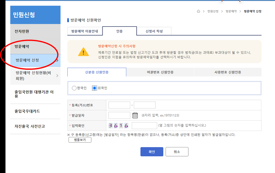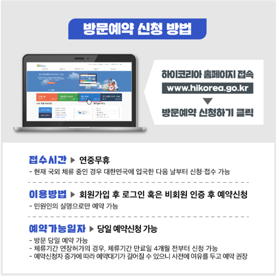 ☞ LINK: 방문예약 이용안내 : 하이코리아 (hikorea.go.kr)